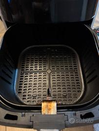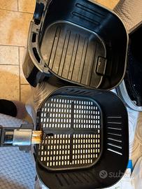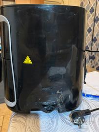 La friggitrice sd aria è perfettamente funzionante potenza massima 200 e gradi 7litri, 8 programmi pre impostati, mantenimento calore, cestello indipendente removibile. Presenta un difetto come da foto 5 e 6 , un buco nella plastica esterna dovuto al contatto con il calore del fornello della cucina, non pregiudica il funzionamento