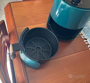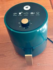 Vendo friggitrice ad aria Mod. 2001-38, color verde smeraldo, con dettagli dorati/neri, perfetta per chi cerca un elettrodomestico funzionale, vendo causa passaggio ad un modello superiore, come nuova, usata 2 volte in totale. L'apparecchio è perfettamente funzionante e pulito. Perché sceglierla: Semplicissima da usare: Ha una comoda manopola per il timer (fino a 30 min) e icone rapide sul coperchio per carne, patatine, pollo, pesce e dolci. Ottima per fritture senza olio, arrostire e scaldare cibi mantenendo la croccantezza. Compatta: Ideale per chi ha poco spazio o per single o coppie. Potente: 1200W per cotture veloci e uniformi, bassi consumi. Condizioni: Pari al nuovo. Cucini con un cucchiaio d'olio e addio odori di fritto in casa! 🏠 💶 Prezzo 60€ trattabili. 📍 Ritiro a mano a San Sperate. 📩 Contattami in privato.