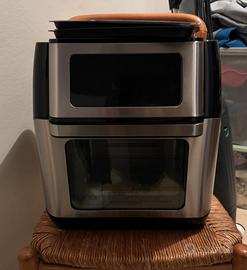 Friggitrice ad aria praticamente nuova, cedo per inutilizzo, la friggitrice ha praticamente 1 mese di vita, compresa di tutti fli accessori come cestello girevole per patstine e barra per spiedo.