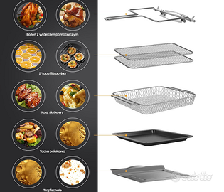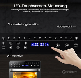 Capacità di 15 litri: la friggitrice ad aria di grande capacità da 18 litri è perfetta per l'uso domestico: un pollo intero da 1,8 kg o patatine fritte da 1000 g si adatta perfettamente. Utilizzato non solo come friggitrice ad aria calda, ma anche come forno, essiccatore