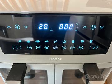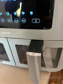 Vendo friggitrice ad aria doppio cestello con due zone di lavoro indipendenti da 4,25L, permette di cucinare contemporaneamente 2 cibi in due modi diversi. Funzione Sync Cook, fine cottura simultanea a diverse temperature, tempi e funzioni. 10 funzioni di cottura automatica rivestimento antiaderente cestelli lavabili in lavastoviglie Ancora in garanzia