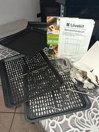 friggitrice ad aria e forno 15 l usato 2 volte tutto accessoriato con ,girarrosto ,accessori per spiedini,contenitore per friggere e ripiani per cottura multipla,con imballaggio ,istruzioni e ricettario