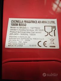 Friggitrice ad aria Cucinella rossa. 2litei 1000W. Design moderno e compatto. Manopola per la regolazione del tempo e temperatura. NUOVA MAI USATO