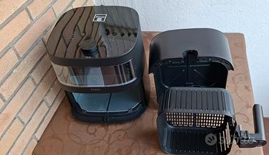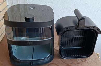 --Come nuova, usata pochissimo.-- Friggitrice ad aria Haier I-Master serie 5. 7 litri. 9 in 1. 9 metodi di preparazione: frittura ad aria, cottura al forno e lenta, arrosto, griglia, disidratazione, riscaldamento, yogurt e scongelamento. Temperatura da 40° a 200°. Parti lavabili in lavastoviglie. Dimensioni: 42,4P x 30,6l x 34,7H cm Molto più di una Friggitrice ad aria, la Friggitrice ad aria I-Master Serie 5 di Haier è un vero e proprio Sous-chef dal design eccezionale. Grazie all'ampio range di temperatura, puoi goderti svariati metodi di preparazione dei cibi, comprese la cottura lenta e la torrefazione. Inoltre, la finestra di controllo in vetro trasparente è facile da usare e da pulire, consentendoti di controllare l'avanzamento della cottura senza aprire il cestello e disperdere calore. Dato il volume dell'oggetto, preferibile il ritiro a mano.