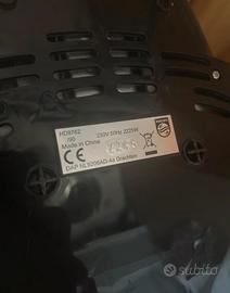 Vendo friggitrice ad aria marca Philips modello Airfryer XXL HD9762 La friggitrice come potete vedere dalle foto è stata utilizzata e necessita di una pulizia. Svendo per mancanza di tempo e voglia di sistemarla. Ma perfettamente funzionante. Lo sportello fatica a chiudersi ma è un leggero scatto che non ne pregiudica il funzionamento. Senza garanzia. Prezzo da nuovo su Amazon 175,00€ Spedisco o ritiro a mano