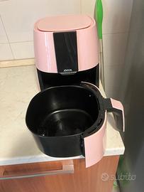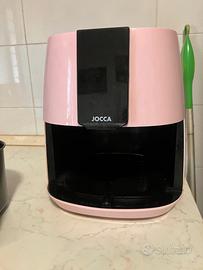 Vendo per passaggio a piu' capiente friggitrice ad aria marca Jocca colore rosa, acquisto Amazon un anno fa, ancora garanzia sino 11/2026, dimensioni larghezza 25/profondita' 25/altezza 30 cm., cestello 3,8 litri (2 persone), potenza 1450 W, display led 8 programmi, perfetto stato, utilizzata 2/3 volte a settimana. No spedizione, solo consegna diretta su Roma, prezzo trattabile.