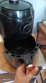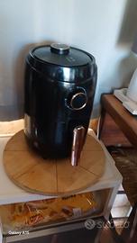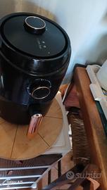 vendo friggitrice ad aria immagine è modello marca Marca: BerlingerHaus 4,04,0 su 5 stelle(105) 2,6 litri 1000w Il design presenta una struttura nera lucida con una manopola di controllo centrale circolare e una maniglia del cestello, entrambi caratterizzati da finiture color oro rosa o rame griglia interna Capacità: 2,6 Potenza: 1000W. Timer: Regolabile fino a 30 minuti. Temperatura: Regolabile tra 80°C e 200°C.