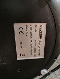 Friggitrice ad aria Severin FR2460 funzionante ed in buone condizioni, cestello con segni di utilizzo, caratteristiche: Capacità: 2,6 litri Temperatura minima: 80 °C Temperatura massima: 200 °C Potenza: 1300 W Peso: 4Kg Timer: Max 30 minuti
