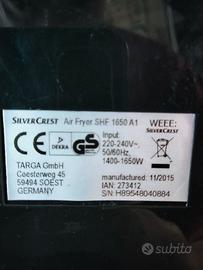Friggitrice ad aria Silvercrest 1650 A1, capienza 2,3 litri, peso 5,1 kg. Usata, buone condizioni.