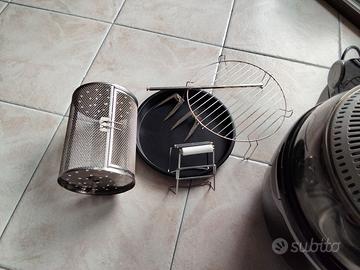 FRIGGITRICE AD ARIA PRATICAMENTE NUOVA COMPLETA DI TUTTI GLI ACCESSORI : CESTELLO PER PATATINE FRITTE , ASTA PER POLLO ARROSTO TEGLIA E PINZA