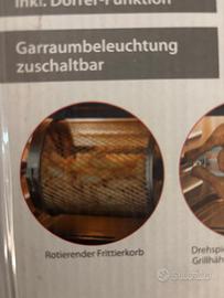 Friggitrice ad Aria pagata 154€ , acquistata durante in soggiorno in Germania ed usata 2 settimane, praticamente nuova. Completa di imballo originale, 3 teglie di cui 2 forate, giroarrosto e cesto per rosolare verdure.
