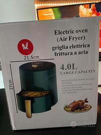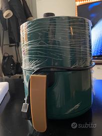 Friggitrice ad aria 4 L verde scura – MAI utilizzata, completa di scatola originale. All’interno sono presenti le istruzioni, un dossier di ricette e la griglia data in dotazione da mettere dentro la friggitrice. Disponibile per la spedizione o consegna a mano a Trento.