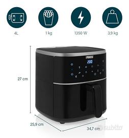 Ampia capacità di 8L per pasti in famiglia: Cuoci fino a 2 kg di patatine (circa 8 porzioni). Regola l’altezza della griglia inclusa per porzioni più piccole e assicurati una cottura uniforme per ogni pietanza.