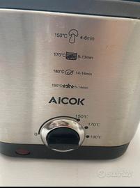 Friggitrice AICOK 900W, col. grigio metallizzato con cestello in metallo e coperchio trasparente per facile vista all'interno. Usata solo due volte, vendo per inutilizzo.