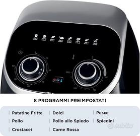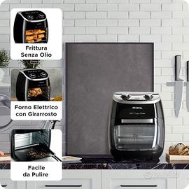 Ariete 4619 Airy Fryer Oven - Friggitrice ad Aria e Forno Elettrico con Girarrosto - Cestello Rotante - Essiccatore - 2000 Watt - 11 Litri - Nero [Classe di efficienza energetica F] Frigge Senza Olio: grazie alla tecnologia ad aria calda ad alta temperatura la friggitrice Airy fryer Oven frigge in modo uniforme, senza bisogno di aggiungere olio o grassi Forno Elettrico con Girarrosto: per cuocere pollo allo spiedo e arrosti. Prova anche la funzione Essiccatore per disidratare a casa frutta, verdura, funghi e carne Cuoce in contemporanea pietanze diverse: grazie alle griglie sovrapposte, cuoce più pietanze, senza rilasciare sgradevoli odori o fumo Cucina in modo Sano e Rispetta l’Ambiente perché la friggitrice ad aria non produce olio esausto, come le friggitrici tradizionali BPA Free: per tutte le parti destinate al contatto con gli alimenti. Basato su test di terze parti.