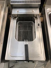 Friggitrice da bagno elettrica usata - Alimentazione elettrica trifase(incluso mobile carrellato) - Vasca cesto singolo(incluso) - Rubinetto scarico Consegna da concordare, salvo esaurimento scorta
