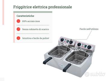 Friggitrice Elettrica professionale 10+10 litri doppia vasca in acciaio inox per Pub Bar Ristoranti. Capienza singola vasca 6 lt. Facile da pulire. Usata 1 mese. Vendita per passaggio a friggitrice più grande. PREZZO NON TRATTABILE.. pagata 243,98€ !