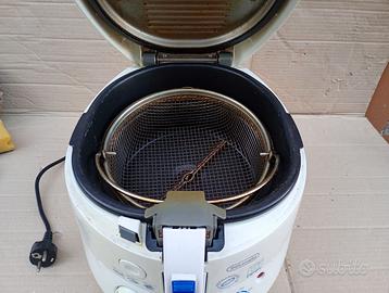 Friggitrice DeLonghi rotofriteuse friggimegllio con cestello rotante condizioni come da foto , io la ho solamente accesa e il forno scalda e funziona e il cestello gira e si toglie , forse manca la batteria a bottone nello strumentino perche è spento (non so che funzione ha )
