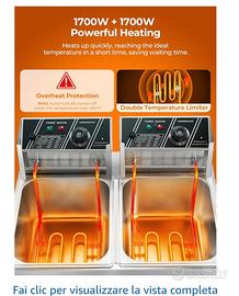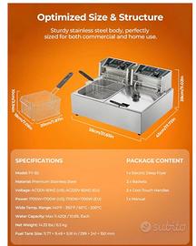 Friggitrice Commerciale con Cestello 21.6L, Temperatura Regolabile da 60 a 200°C, Friggitrice olio in Acciaio Inox da 3400W per Cucina e Uso Ristorazione.
