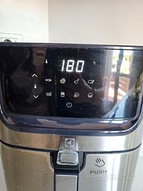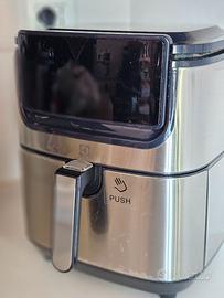 Potenza 1800w Altezza (mm) 415 Larghezza (mm.) 312 Profondità (mm) 373 Categoria Cottura Elettrica Vendo per acquisto friggitrice piu grande Capacità 5.5l 8 programmi di cottura cottura Touch screen Perfettamente funzionante, è stata usata ma funziona benissimo