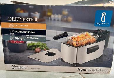 Vendo friggitrice elettrica Aigostar Agni da 3 litri, ideale per preparare patatine croccanti, fritti perfetti e tanto altro in modo semplice e veloce. Caratteristiche principali: Capacità: 3.0 L (perfetta per tutta la famiglia) Potenza elevata: 1800–2200W → riscaldamento rapido Temperatura regolabile per ogni tipo di cottura Vasca smaltata, resistente e facile da pulire Design smontabile per una pulizia ancora più comoda Sistema di sicurezza anti-surriscaldamento Spegnimento automatico quando si rimuove il gruppo elettrico Piedini antiscivolo per maggiore stabilità Condizioni Nuove (è stato un regalo, avevo già una friggitrice simile)
