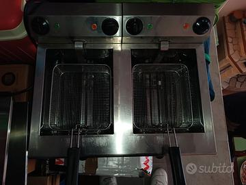 Friggitrice Elettrica Doppia Vasca da 10+10 Amitek. Prodotto in ottimo stato utilizzata pochissimo. Con rubinetti frontali per uno scarico d'olio più veloce e sicuro. Vendo per chiusura attività.