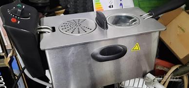 Friggitrice NUOVA elettrica professionale Sinotech GD1340 con capacità da 3 litri e potenza di 2000 W, realizzata in acciaio inox, dotata di cestello in acciaio con maniglia staccabile, coperchio con filtro antiodore, termostato regolabile fino a 190° C e sistema di sicurezza.