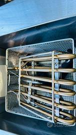 Dotata di supporto appendi cestelli per sgocciolare l'olio dalla frittura.
