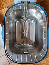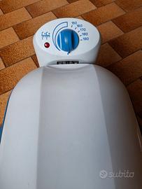 Vendo friggitrice professionale della prestigiosa marca belga FRI-FRI, leader mondiale per qualità e durata. Oggetto NUOVO (fondo di magazzino), mai utilizzato, con componenti in acciaio inox immacolati. Il formato Compact è ideale per single, coppie o per piccoli fritti veloci (patatine, tempura, pesce). Permette un riscaldamento rapidissimo e un notevole risparmio d'olio rispetto ai modelli ingombranti. Dati tecnici precisi: Misure interne vasca: 25 x 19 cm. Misure cestello frittura: 22 x 17.5 cm. Tecnologia: Resistenza a immersione professionale per un fritto asciutto e croccante. Pulizia: Vasca in acciaio inox completamente estraibile e lavabile in lavastoviglie. Stato: Eccellente, completa di cestello e coperchio originali. Disponibile per consegna a mano o spedizione tracciata.