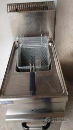 Questa è una Friggitrice professionale Marca MB con una vasca a gar su armadio chiuso con 2 cestelli, capienza olio 15 litri.