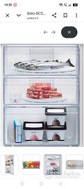 BCSA285K4SN: Frigorifero da Incasso Combinato, Statico, h 177.5 cm Classe di Efficienza Energetica F Larghezza 54 cm Sistema di Raffreddamento Statico Caratteristiche Principali Tipologia Prodotto Combinato Tipologia di Incasso da Incasso Altezza 177.5 cm Larghezza 54 cm Profondità 54.5 cm Classe di Efficienza Energetica F Sistema di Raffreddamento Statico Posizione Congelatore Combinato Colore Bianco Classe di Rumorosità C Product Series b100 Volume Lordo e Netto Volume Totale Lordo 275 L Volume Totale (L) 271 L Volume Totale Comparto Frigorifero (L) 193 L Volume Comparto Congelatore (L) 78 L Caratteristiche Frigorigero Tipologia Ripiani Frigorifero Vetro Numero di Cassetti Verduriera 1 Capacità Portauova 6 Caratteristiche Congelatore Tipologia Fabbricatore Ghiaccio Vassoio Cubetti Ghiaccio Numero di Cassetti Congelatore 3 Capacità di Produzione Ghiaccio Giornaliera (kg/giorno) 2.5 kg Capacità di Congelamento Giornaliera (kg/giorno) 3.6 kg Design Porte Reversibili Installazione Facile Cerniera Scorrevole Led Illumination® Posizione Congelatore Combinato Tipo di Controllo Meccanico Tipologia di Incasso da Incasso Colore Bianco Performance e Consumi Classe di Efficienza Energetica F Consumo Energetico Annuo (kWh/anno) 281 Consumo Energetico Giornaliero (kWh/giorno) 0.77 Consumo Energetico Giornaliero a 32°C 1.117 Livello di Rumorosità (dBA) 37 dBA Classe Climatica SN-ST Voltaggio 220 - 240 V Frequenza 50 Hz Classe di Rumorosità C Temperatura Massima dell'Ambiente esterno (°C) 38°C Consumo Energetico Giornaliero a 16°C 0.422 Autonomia senza Corrente Elettrica (H) 13 Volume Totale Comparto Frigorifero (L) 193 L Volume Comparto Congelatore (L) 78 L Capacità di Congelamento Giornaliera (kg/giorno) 3.6 kg Dimensioni e Peso Altezza 177.5 cm Larghezza 54 cm Profondità 54.5 cm Peso 56 kg Altezza con Imballaggio 187 cm Larghezza con Imballaggio 57.5 cm Profondità con Imballaggio 60 cm Peso con Imballaggio 60.8 kg RITIRO A MANO NON SPEDISCO!!!!