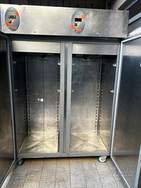 “Armadio refrigerato professionale a doppia anta in acciaio inox, progettato per garantire massima igiene, resistenza e prestazioni elevate in ambienti ad alto ritmo operativo. Dotato di ampio vano interno completamente modulabile, consente un’organizzazione efficiente degli ingredienti e una gestione ottimale dello spazio. Il sistema di refrigerazione ventilata assicura una distribuzione uniforme del freddo, mantenendo costante la qualità delle materie prime. Struttura solida, facilmente sanificabile e montata su ruote per una maggiore praticità di movimentazione, ideale per cucine professionali dinamiche e ad alto volume.”