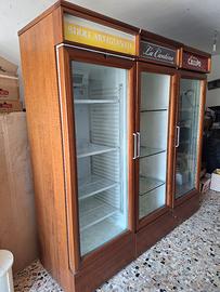 Frigo vetrina rivestito in legno , Vetrina in legno con ripiani in cristallo , vetrina gelati/congelatore .. elementi separati fra loro.. vendo in un unica soluzione .. ritiro in loco nn spedisco