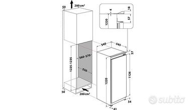 FRIGORIFERO DA INCASSO INDESIT S 12 A1 D/I 2, misure L54xH123xP54,5cm, LT 209 monoporta, Classe E, 5 ripiani in vetro, Capacità netta totale (l):209, Capacità netta Freezer (l):0 (in omaggio colonna frigo in legno come da foto non fissata).