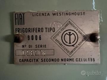 Frigorifero FIAT mod. 9006 (anni 60) mat. 23216. Conservato in tutte le sue parti origionali e solo verniciato a forno esternamente, il tutto in condizioni eccellenti e funzionante. Non esite un frigo, dello stesso modello, pari condizioni. 750 euro, trattabili. whatsapp / cell. 3293237238