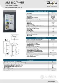 frigo/freezer Whirpool Art 880/A+/NF guasto (non raffredda). Per pezzi di ricambio.
