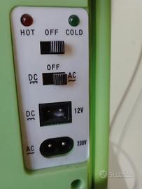 Funziona sia a 220V che a 12V (accendisigari auto), con interruttore per freddo/caldo.
