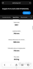 Per cambio cucina vendo Frigo Samsung perfettamente funzionante, ottimo sia interno che esterno, nelle foto scheda tecnica con misure, garanzia motore ancora per 4 anni, con dispenser acqua esterno(vedi foto), pagato 740€ da Expert con regolare scontrino che forniró per la garanzia del motore inverter