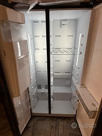 Vendo splendido frigorifero americano (Side-by-Side) marca Beko, serie top di gamma con finitura esterna in vetro nero a specchio. Un elettrodomestico di design che arreda la cucina, unendo estetica e tecnologia avanzata. Il frigorifero è USATO ma tenuto in buone condizioni estetiche e funzionali. CARATTERISTICHE TECNICHE PRINCIPALI: • Motore ProSmart™ Inverter: Alta efficienza, maggiore silenziosità e durata nel tempo. • Tecnologia NeoFrost™ Dual Cooling: Due sistemi di raffreddamento separati che mantengono l'umidità ideale nel frigo e zero ghiaccio nel freezer (No Frost totale). • Dispenser Esterno: Erogazione di acqua fresca, cubetti di ghiaccio o ghiaccio tritato direttamente dalla porta. • Display LED Touch: Controllo elettronico delle temperature e funzioni (Quick Fridge, Quick Freeze, Modalità Vacanza). • Interni Premium: Colonna luminosa a LED, ripiani in vetro temperato ad alta resistenza, griglia porta-bottiglie in acciaio e cassetti spaziosi. DIMENSIONI (Approssimative): • Larghezza: 91 cm • Altezza: 179 cm • Profondità: 70 cm (incluse porte) ⚠️ NOTA IMPORTANTE (Trasparenza totale) Il frigorifero è perfettamente funzionante. Per agevolare il trasporto è stata smontata l'anta sinistra (freezer). In questa fase è stato scollegato il tubicino interno dell'acqua che alimenta il dispenser. Il riallaccio è un'operazione semplice da effettuare al momento del rimontaggio dell'anta, ma è necessario che l'acquirente provveda autonomamente (o tramite tecnico) per ripristinare la funzione acqua/ghiaccio. Il prezzo tiene già conto di questo piccolo intervento necessario. PREZZO E CONDIZIONI • Prezzo: € 430,00 (Trattabili per chiusura rapida) • Stato: Visto e piaciuto. • Ritiro: A carico dell'acquirente a [Torino]. • Consiglio: Sono necessarie almeno 2 persone e un furgone adeguato date le dimensioni e il peso dell'oggetto.