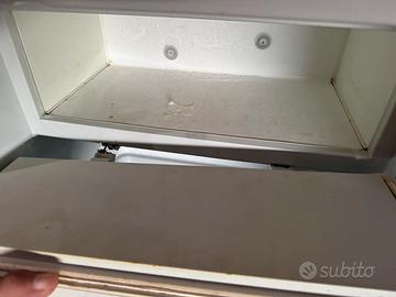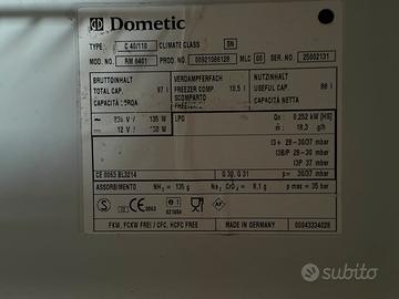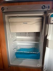Frigo trivalente dometic rm6401 perfettamente funzionante come da foto con termometro, esternamente perfetto, presenta solo una lesione allo sportellino del ghiaccio ed una cerniera in plastica rotta, ma chiude alla perfezione inquanto la molla ê perfettamente in sede e l’atra cerniera ê integra