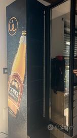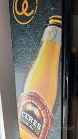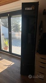 Frigo vetrina slim brandizzato Ceres Strong Ale, marca Intercool. Corpo nero con porta in vetro e pannello laterale con grafica originale Ceres. Interno con serpentina, ventola di raffreddamento e termostato regolabile. Ripiani a griglia. Perfettamente funzionante, bellissimo — ideale per bar, pub, tavernetta o per chi ama il mondo Ceres. Ritiro in zona Formello (RM).