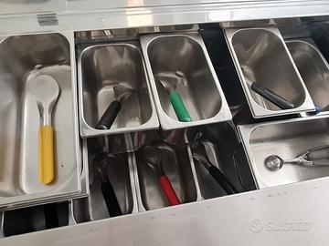 Frigo vetrina gelati contiene 16 vaschette con cella -20 con aggiunta 18 palette gelato acciaio colorate porta coni e 28vaschette misure Lunghezza 160 Profondità 68 Altezza 120 750€ Davide 3384667134