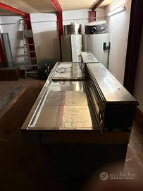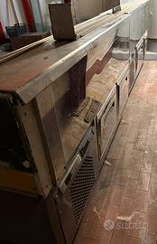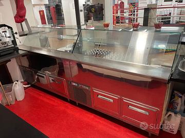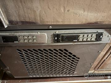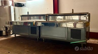 Frigo Espositore con celle freezer interne . Sono due banchi da 150 cm per un totale di 300 cm , parte frontale piano refrigerato con vetrina . Retro 2 celle freezer per banco con doppio display . Usato in buono stato , rimossi i pannelli in legno con Logo . Misure : L 300 x P 90 H 96