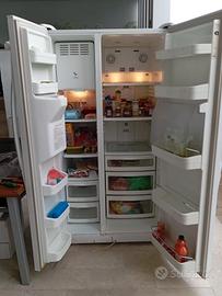 Vendo frigorifero Samsung side by side, Mod. SR-S24 FTE con erogatore acqua e ghiaccio e accesso alle bevande diretto. Si può allacciare alla rete idrica. Frigo molto capiente con comodi cassetti e mensole misura 45 x 40 cm e 45 x 30 cm.