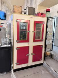 Frigo armadio di macelleria perfettamente funzionante, mensole di legno, il motore è stato cambiato con uno nuovo e molto funzionante. Un piccolo difetto è che manca una maniglia ma può esser sostituita facilmente con una nuova. Le ante sono color rosso e la base bianco panna Prezzo non trattabile per maggiori info contattate 3336797356