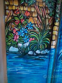 Vendo frigorifero decorato interamente a mano da un’artista locale, con scena bucolica ispirata alla tradizione mediterranea: una donna in abiti folkloristici con anfora, fontane, vigneti e paesaggio rigoglioso. Il dipinto è stato realizzato con colori acrilici resistenti, protetti da vernice trasparente.
