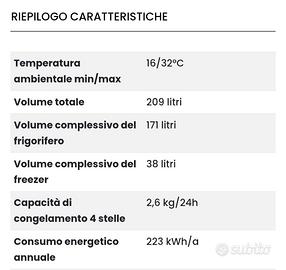 Vendo frigorifero Atlantic usato come nuovo, così come da scheda tecnica in foto