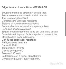 Vendo per ampliamento locale FRIGORIFERO ATOSA ad un’anta,in ottimo stato ,utilizzato con cura per solo 5 anni.per info e spedizioni contattatemi in privato.