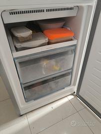 Design Posizionamento dell'apparecchio:Libera installazione Colore del prodotto: Acciaio inossidabile Cerniera: portaDestra Porte reversibili:Sì Angolo di apertura della porta: 90° Display incorporatoNo CertificazioneCE, VDE Prestazione Capacità netta totale:302 L Classe climatica:SN-T Emissione acustica: 42 dB Frigorifero Capacità netta frigorifero:215 L Luce interna:Sì Tipo di lampada: LED No Frost (frigorifero): Sì Sistema Multi-Airflow (frigorifero): Sì Numero di ripiani frigorifero:4 Numero di cassetti per verdura:1 Porta uova: Sì Congelatore Posizione del congelatore:Posto in basso Capacità netta congelatore: 87 L Capacità di congelamento: 11 kg/24h Autonomia senza energia elettrica20 h Punteggio4* No Frost (congelatore): Sì Numero di ripiani congelatore: 3 Vaschetta del ghiaccio: Sì Zona fresca Compartimento zona fresca:Sì Gestione energetica Classe di efficienza energetica: A++ Consumo energetico annuo: 235 kWh Carico di collegamento: 100 W Tensione di ingresso: AC220 - 240 V Frequenza di ingresso: AC50 Hz Dimensioni e peso Larghezza: 600 mm Profondità: 660 mm Altezza; 1860 mm Peso:70 kg ***RITIRO E TRASPORTO A CARICO DELL' ACQUIRENTE*** ***NON TRATTABILE*** ***NO PERDITEMPO*** ***NO OFFERTE RIDICOLE***