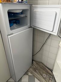 Vendo frigorifero a doppia porta con apertura a sinistra. Congelatore nella parte superiore e frigorifero nella parte inferiore. Misure in cm: Larghezza 57.5, Altezza 151.6, Profondità 56.8. Peso 44 kg.